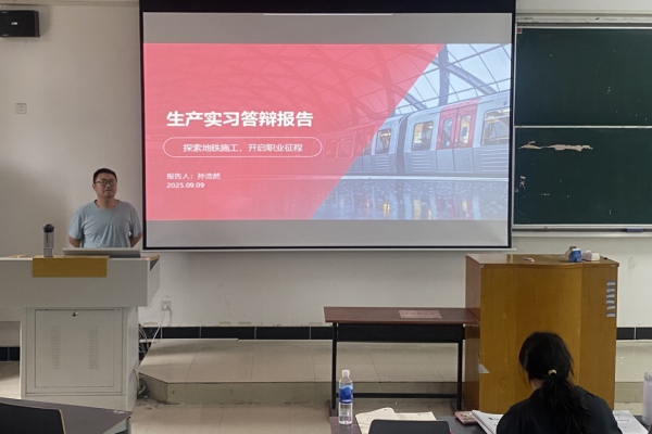 答辩会上,唐月老师首先讲解了答辩流程、时间把控、评分标准等注意事项,为答辩有序开展奠定了基础。随后同学们依次登台,通过精心打磨的的PPT展开汇报:不仅呈现了实习所参与工程项目的现场实景,更深入分享了面对施工难点时的思考及解决方案,实习心得体会也是非常深刻。每位同学都立足实践,将理论知识与现场工作相结合,汇报内容详实、各具特色。