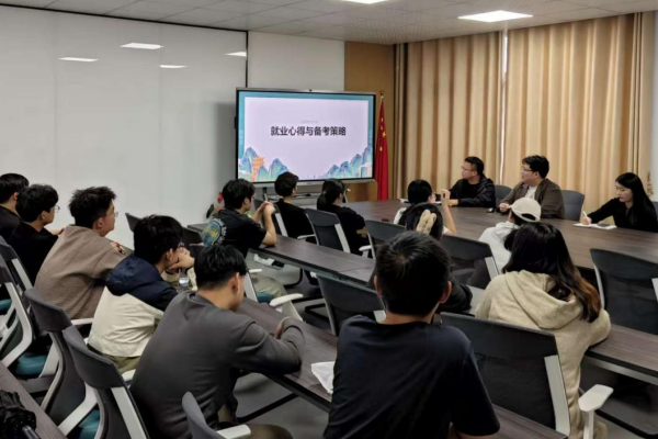 分享环节,2016级毕业生王越同学以“城建学院相关专业备考公务员的‘优势与策略’”为核心,结合自身在省厅机关的工作经历,从“岗位选择”“复习规划”“答题技巧”三方面展开。他建议同学们优先选择与城市规划、基础设施建设相关的省厅、市局岗位,充分发挥在工程管理、规划设计等领域的技术优势;针对行测备考,他拆解了言语理解、资料分析等模块的提分技巧,强调申论需紧扣“城市更新”“矿坑修复”等建设类热点话题积累素材,并现场展示了自己备考时的AI复习法与错题整理体系,让备考方法更具实操性。线上分享的2018级毕业生葛万成同学则聚焦“西部计划与多元公职路径”,结合自身基层服务经历展开分享。他打破“考公唯国考省考”的认知局限,详细介绍了西部计划、三支一扶等政策类岗位的报考条件、服务内容及职业发展前景,提出“以基层服务为跳板,曲线进入公职体系”的新思路;同时建议同学们关注国企、事业单位中的城建类岗位,如城投公司、规划设计院等,根据自身专业特长与职业倾向,拓宽公职与准公职就业选择。针对备考,他特别强调“靶向刷题”的重要性,强调要结合自身在数量关系、判断推理等模块的薄弱项制定针对性计划,避免无效努力。