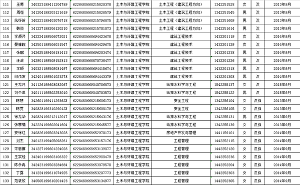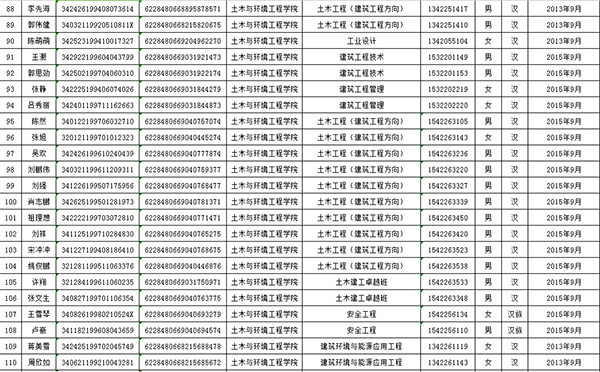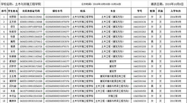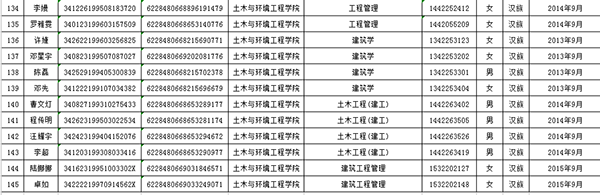 土木与环境工程学院2015-2016学年度普通高等学校国家励志奖学金获奖学生初审名单公示表
