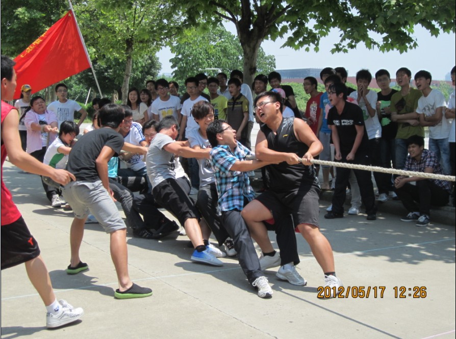接下来的几天,比赛激烈而有序的进行着,一次次将比赛推向高潮。拔河比赛实行淘汰制晋级方式,抽签分组决定比赛顺序。螃蟹赛跑和五人六足过程中更是笑声不断,充分体现出“友谊第一,比赛第二”的原则。每班除参赛人员以外,其他同学都自动组成啦啦队为本班加油。比赛现场欢呼声、加油声此起彼伏,人声沸腾,热闹非凡,气氛欢快而激烈。