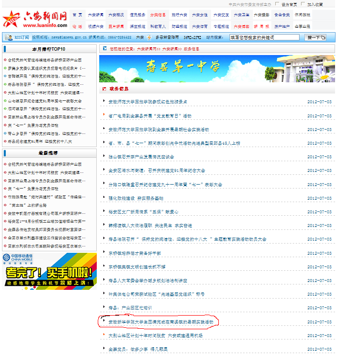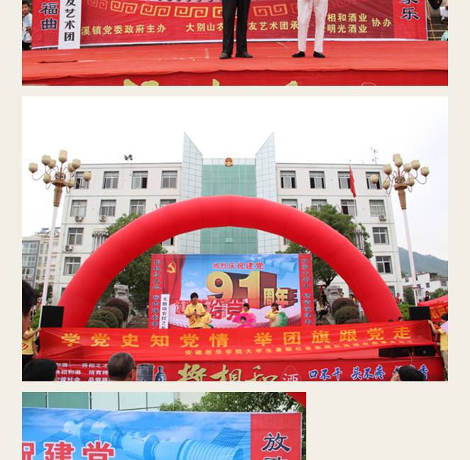 期间,实践队在立夏节起义旧址---丁埠起义纪念馆、全国第一所希望小学--金寨县希望小学以及当地新农村建设示范点、农产品加工企业等地圆满完成了学党情、知党史,关爱留守儿童,调研新农村建设三个实践项目。此外,在南溪镇纪念建党91 周年文艺汇演上,实践队表演了精心编排的歌伴舞《映山红》,与老区人民一同欢庆党的91岁生日。