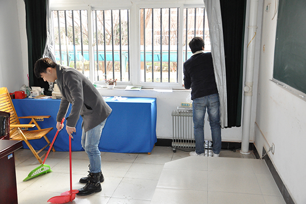 寒冷的天气并没能阻挡同学们的工作热情,同学们分工明确,搭配默契,能处理的立刻处理,难处理的一起处理,不能处理的想法子处理。一个个都热火朝天的投入到环境整改中,办公室的老师看见了都对同学们的工作表示支持和赞许。