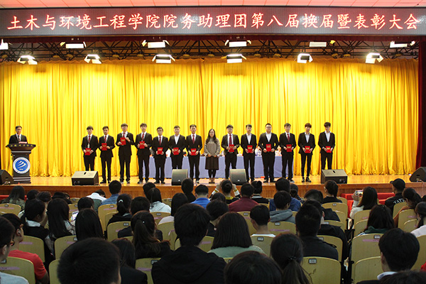 本网讯(通讯员:张杨)为更好的锻炼学生能力,促进学生工作迈向新台阶,同时更好的为土木与环境工程学院师生服务。土木与环境工程学院于10月24日中午在校大礼堂举行第八届院务助理团换届暨表彰大会。土木与环境工程学院执行院长蒋亚龙,行政副院长李洁,院长助理谢汝强,教学秘书汪睿,行政秘书、助理团指导老师张杨,辅导员代表,土木与环境工程学院院务助理团新老成员及学校社团代表参加了本次大会。