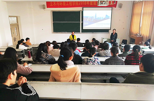 本网讯(通讯员:崔梦雨)为指导学生做好职业规划,帮助学生提高职业素养和求职能力,土木与环境工程学院于11月24日下午举办2018年度就业指导讲座。本次讲座邀请土木与环境工程学院校企合作单位美好装配人力资源部培训经理刘玉婷女士,土木与环境工程学院副院长李洁、毕业班辅导员代表、土木学院2015级毕业班约200名学生聆听了此次讲座。