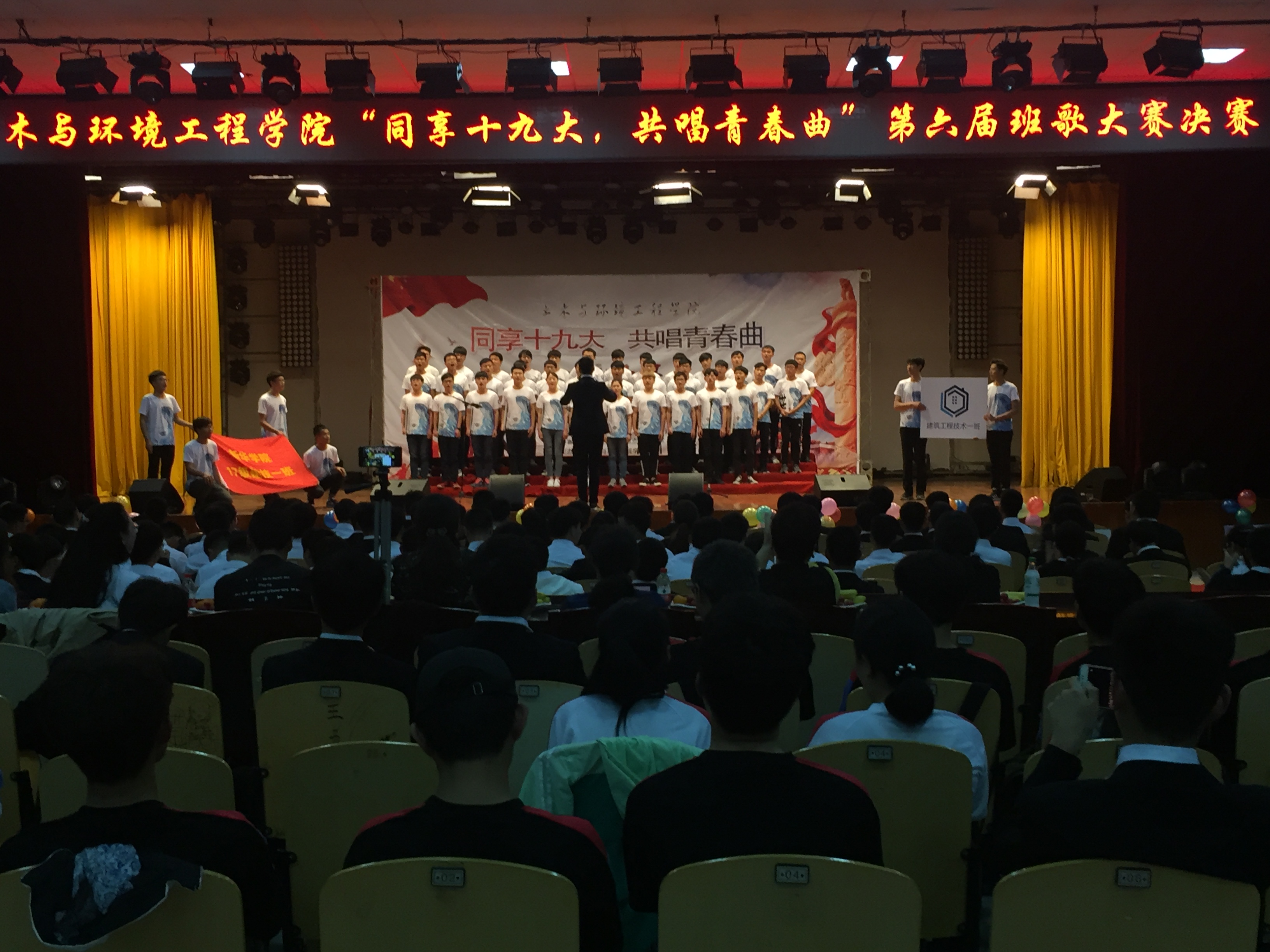 本次比赛由土木与环境工程学院团总支学生会承办,经过初赛的激烈角逐,共12支班级代表队参加决赛。《强军战歌》《朋友》《奇迹再现》《仰望星空》等等,一首首脍炙人口,催人向上的歌曲被学生们演绎的淋漓尽致,台下掌声连连。学生们自信的表情,整齐的服装,奇特的创意,朝气蓬勃的精神面貌,洪亮的歌声赢得了评委一致好评。比赛结束后,评委作出点评,黄梦肯定了学生们在比赛过程中做出的努力,对各班的表演给予高度的赞扬,此次比赛与主题契合,表演多元化。