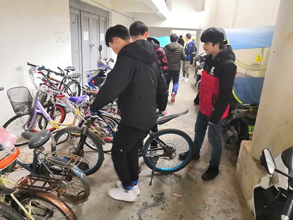 同学们集合完毕后,重点打扫实验楼和教学楼周边卫生。按照划分的区域进行,分工明确,秩序井然,以饱满的热情开始工作。清理教学楼及实验楼周边的卫生死角,统一处理车棚内长期存放的无人认领废旧车辆。清扫完毕后,教学楼周边的环境焕然一新。