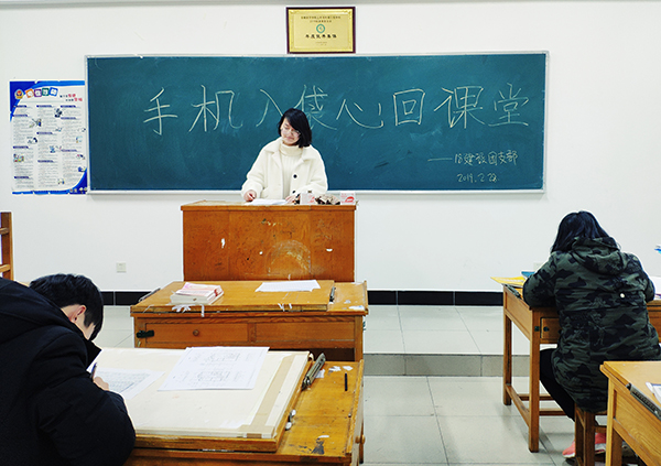 随着智能时代的快速发展,部分同学上课期间用手机刷微博、聊微信、玩游戏、购物等,严重影响上课秩序和听课效率。第一步,安装手机收纳袋。学院结合实际情况,在教学楼每间教室内配备一个容纳手机的收纳袋,实施课堂手机管理制度,课前同学们自觉把手机设置成静音模式,按照顺序放进手机袋,课后自行取回。要求学生“手机入袋”,打造“人机分离”的无手机课堂。第二步,组织开展宣传班会。以班团创建委员会为平台,各班班长和团支书在规定时间内自行组织班级同学开展主题班会,加强理性使用手机的生活理念。第三步,开展以“手机入袋,心回课堂”为主题的橱窗宣传和手抄报展示,以学院LED电子屏为载体展示宣传标语,并由学生会信宣部制作宣传教育海报张贴。