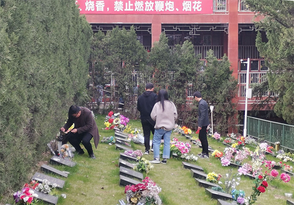 班级学生依次为烈士献上鲜花,接着集体庄严宣誓,用年轻而又充满力量的声音告慰英灵。宣誓完毕在陵园附近开展清扫垃圾活动。