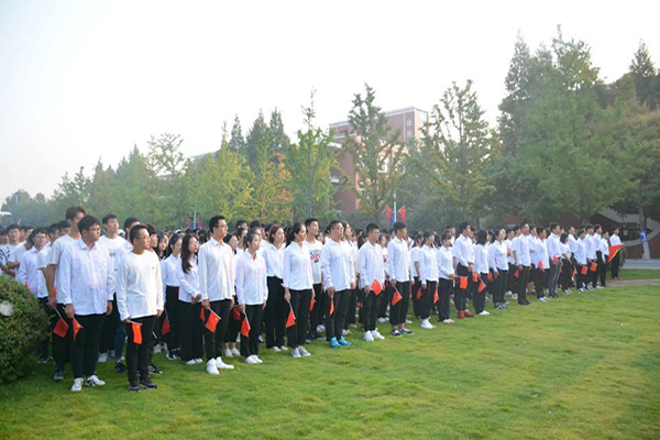 活动在庄严的国歌声中拉开帷幕,国旗护卫队组成的升旗方阵迈着整齐划一、铿锵有力的步伐,昂首阔步护卫着国旗走上升旗台。随着“向国旗——敬礼!”口令声响起,雄壮的《义勇军进行曲》响彻大地。擎旗手奋力挥动右臂,将鲜艳的五星红旗抛向天空,迎风飘扬。在全体师生激昂的歌声中国旗缓缓升起。