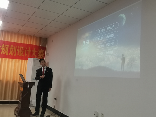 在比赛职业规划参赛中,选手结合PPT从自我认识、职业认知、职业生涯规划、制定行动策略、计划修正与备选方案等五个方面进行阐述,评委根据学生的阐述以及方案进行现场提问、打分。整个比赛过程紧张有序,学生们的职业规划设计结构完整、逻辑清晰、创意十足、重点突出,演讲过程富有感染力。