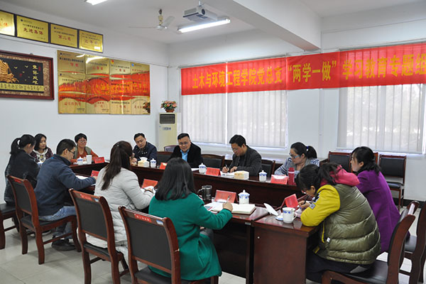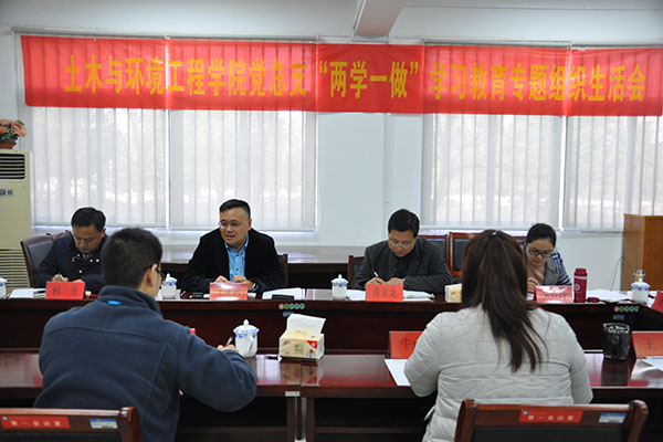 本网讯(通讯员 张杨 摄影 张杨)3月8日下午,土木与环境工程学院召开了“两学一做”专题民主生活会,校党委副书记、副董事长王孝武、土木与环境工程学院党总支书记蒋亚龙、副书记杨光、党总支委员及各支部书记参加,会议由土木学院党总支书记蒋亚龙主持。