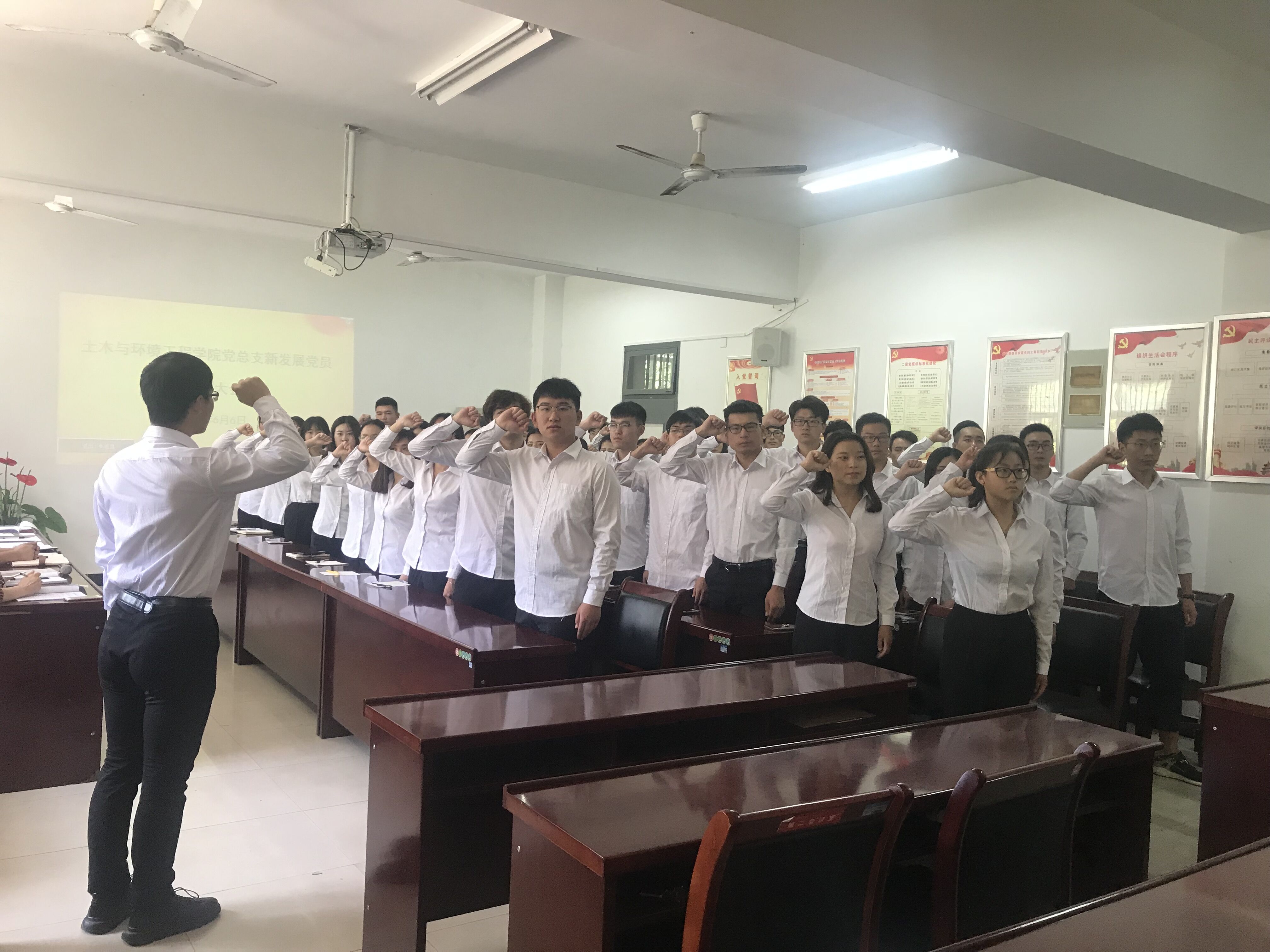 本网讯(通讯员:黄春晓)6月6日中午,土木与环境工程学院党总支隆重举行了发展新党员宣誓大会。会议由组织专员张斯媛主持,土木与环境工程学院党总支成员和各支部书记出席了大会。