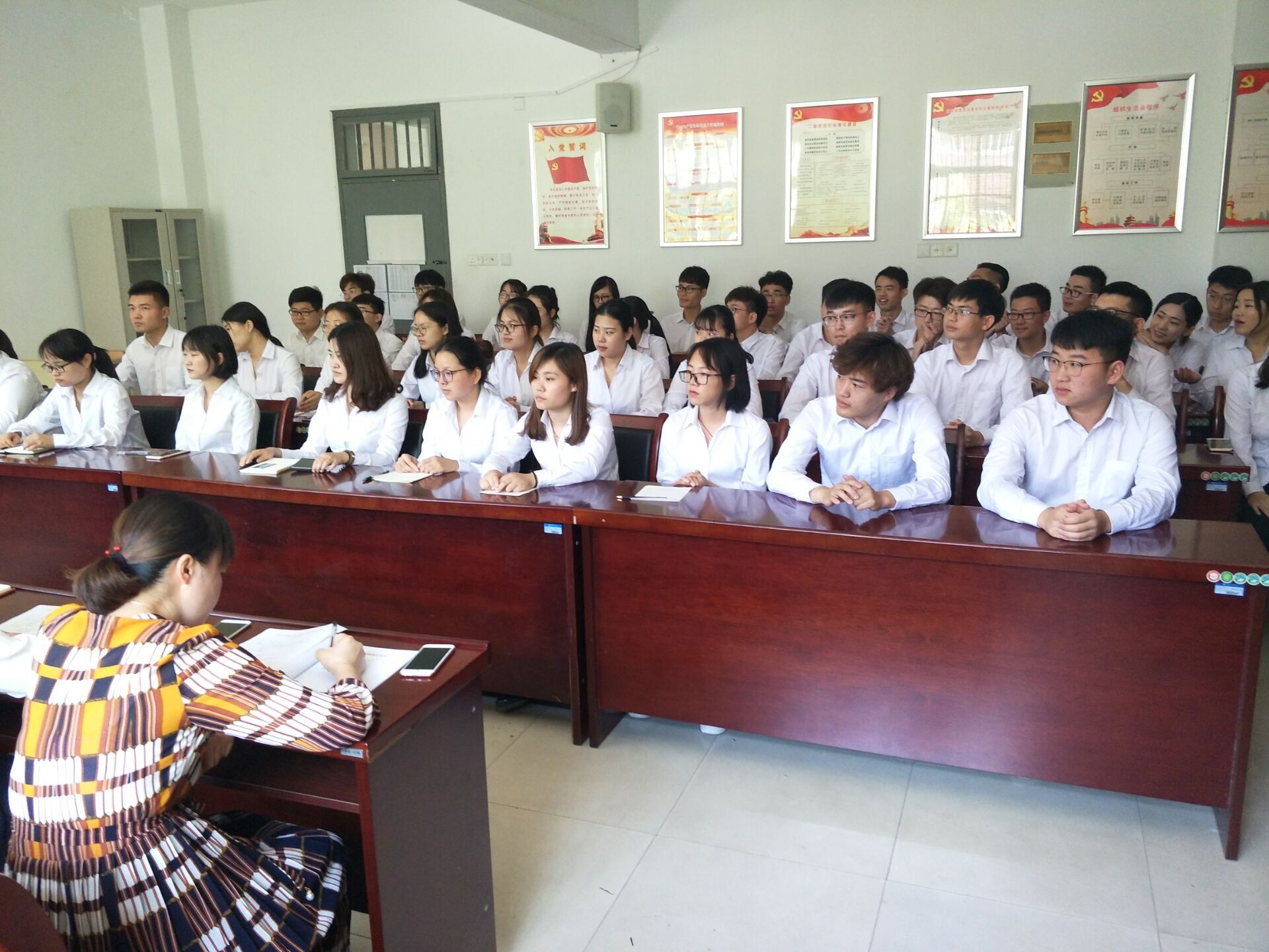 随后,操宏华对新党员表示祝贺,同时提出了三点要求:一是明确党员身份和职责,加强对马克思主义基本理论及其中国化最新成果,特别是习近平总书记系列重要讲话精神的学习研究,提升理论素养。二是严格要求自己,更好的发挥学生党员的模范带头作用,打造良好的班风学风。三是要求各支部细心梳理党员发展的规范流程,做到党员发展标准化,吸纳更多的优秀学生。
