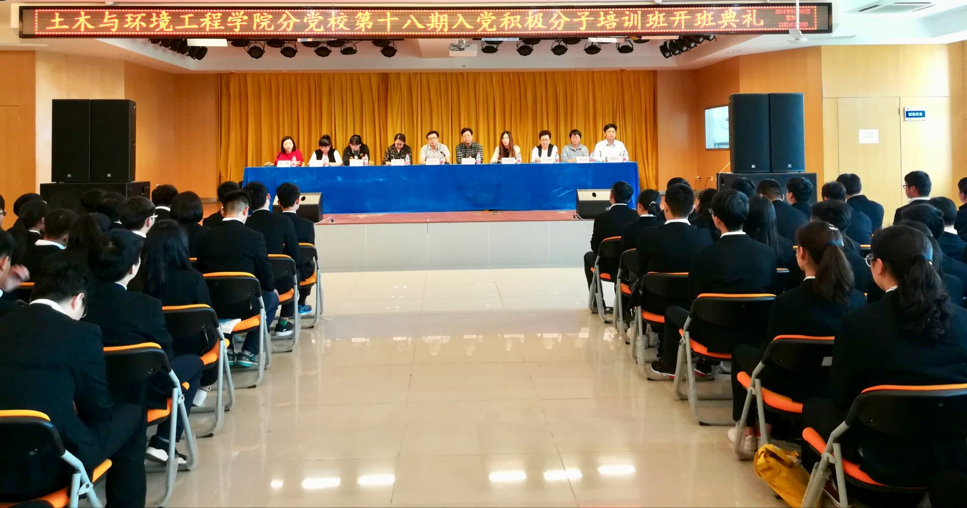 本网讯(通讯员:张心钰)4月2日中午,土木与环境工程学院第十八期入党积极分子训练班开班典礼在学校小礼堂隆重举行。土木与环境工程学院执行院长、党总支书记操宏华,党总支副书记蒋亚龙,党总支副书记李洁,分党校校长、组织专员张斯媛,本期党校班主任王菁、郭意乐,党总支各学生支部书记以及228名党课培训学员参加了本次开班典礼。