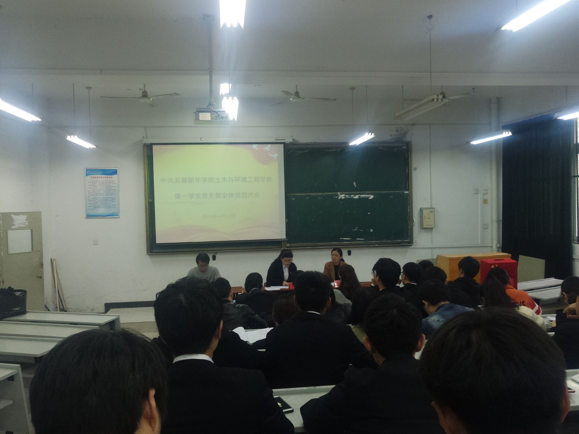 本网讯(通讯员:赵群)4月13日下午,中共安徽新华学院土木与环境工程学院第一学生党支部召开全体党员会议,支部委员会委员赵群、刘伟、杨坦及全体党员参加了本次会议,会议由土木与环境工程学院第一学生党支部书记赵群同志主持。