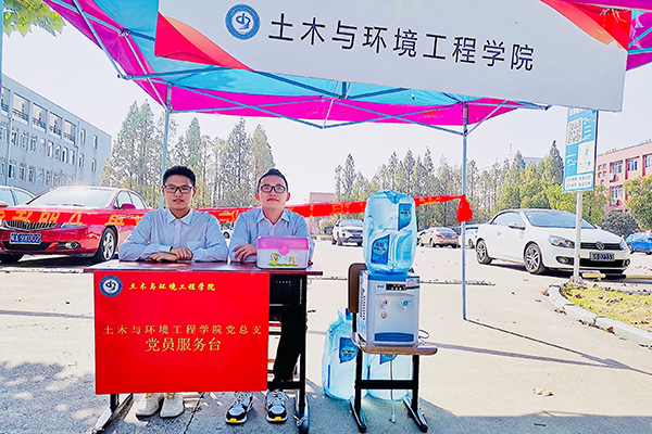 9月19日土木学院学子的热情不减,精神抖擞地参与到了各个项目训练当中,在军训休息期间,新生们前来党员服务台取水,我院党员黄效东同学热心帮助搬运矿泉水,让每一位新生们都能感受到温暖。