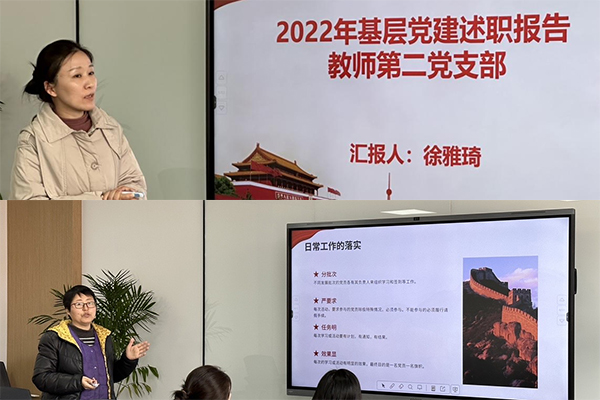 本次述职采取现场PPT汇报的方式进行。五位党支部书记结合2022年度本支部全面推进党的政治建设、思想建设、组织建设、作风建设、纪律建设、作用发挥等情况,过去一年不断加强党建工作的主要做法、特色亮点和成效,以及基层党支部书记落实党建工作责任制情况进行了现场述职汇报,同时深入剖析了本支部党建工作存在的问题及不足,并对下一年度的工作进行了展望和规划。总支书记对每位支部书记的述职内容进行了点评,对各基层党支部过去一年通过不懈努力取得的工作成绩给予肯定,并对工作中存在的问题提出了有针对性的建议和指导意见。