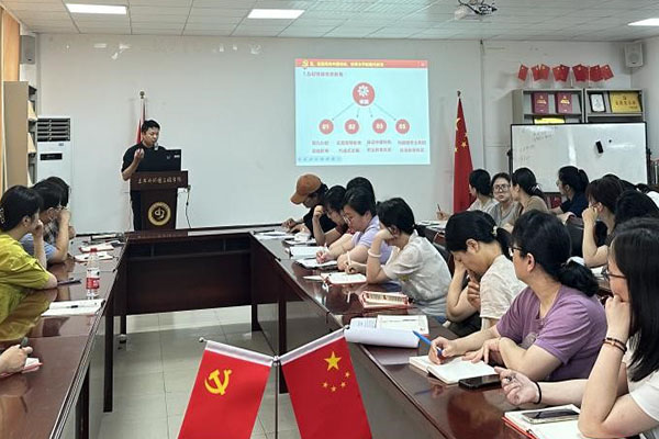 城市建设学院党总支副书记崔风波结合《习近平总书记教育重要论述讲义》(以下简称《讲义》)带领大家开展精神学习。《讲义》中指出教育事业的发展要坚持党对教育事业的全面领导,坚持把立德树人作为根本任务,优先发展教育事业是推动党和国家各项事业发展的先手棋,要始终把教育摆在优先发展的战略地位。