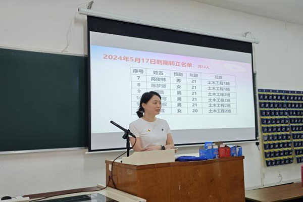 本网讯(通讯员:张子豪)5月17日,一场庄严的预备党员转正大会在城市建设学院第二学生党支部内举行。此次大会的核心议程是讨论汪娇等12名预备党员能否如期转为中共正式党员。12名预备党员在一年预备期内,通过不懈努力,展现了对党忠诚、为师生服务的精神风貌,用实际行动践行党员先锋模范带头作用。