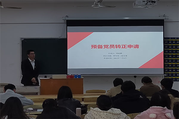 本网讯(通讯员:程禹)为进一步做好党员发展工作,加强党组织队伍建设,增强党员队伍的生机与活力,11月8日下午,城市建设学院第二学生党支部在教一214教室召开预备党员转正大会。参与本次会议的有第二学生党支部书记牛山林、第二学生党支部组织委员胡玉叶,以及第二学生党支部全体正式党员和预备党员。