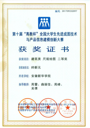 BIM设计大赛、全国成图大赛建筑类尺规二等奖。